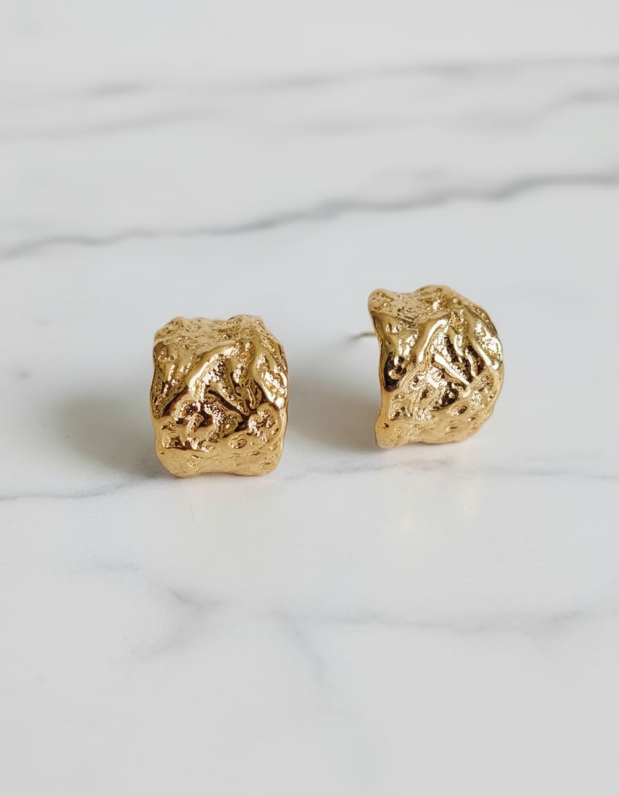 The Golden Crust Studs (Product Code: ER001) are crafted to make a statement. Their bold, organic shape exudes natural elegance, making them the perfect accessory to elevate any outfit.